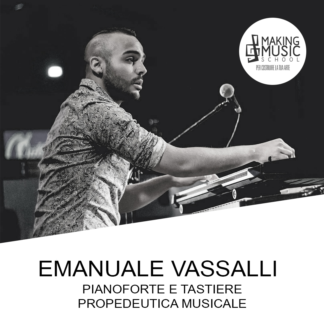 Emanuele Vassalli sin da bambino prende parte a spettacoli teatrali, musical e concerti, maturando un rapporto naturale e appassionato con la musica dal vivo. In seguito si avvicina allo studio del pianoforte con Nicola Morali, affiancando allo strumento corsi di teoria musicale, armonia, solfeggio, musica elettronica e coro, che ne arricchiscono il percorso formativo.